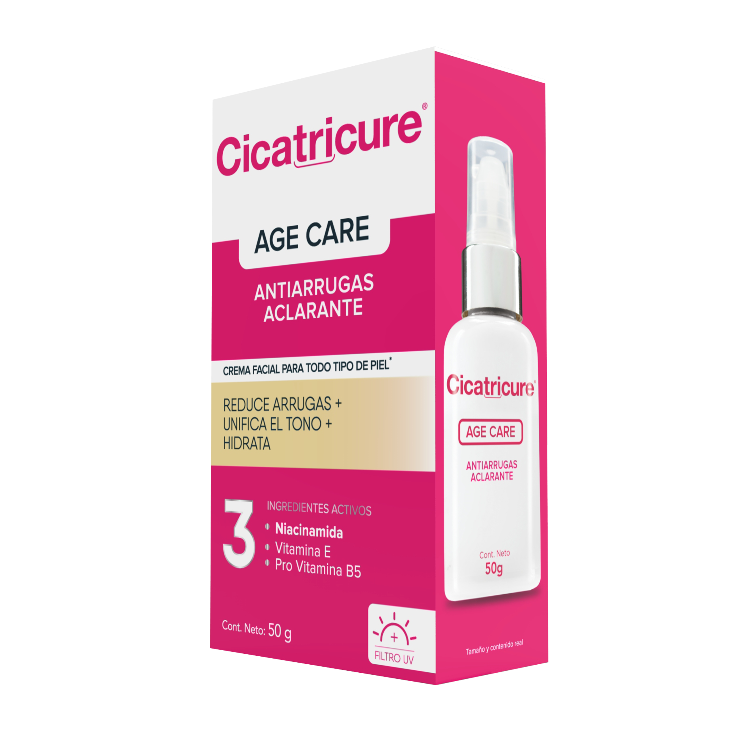 Cicatricure Age Care ANTIARRUGAS ACLARANTE es una CREMA FACIAL con ÁCIDO HIALURÓNICO reduce la profundidad de las primeras arrugas, aporta LUMINOSIDAD, UNFICA el tono y mejora la HIDRATACIÓN de la piel. Además contiene FILTROS UV que ayudan a prevenir la formación temprana de nuevas arrugas. Contiene ingredientes: