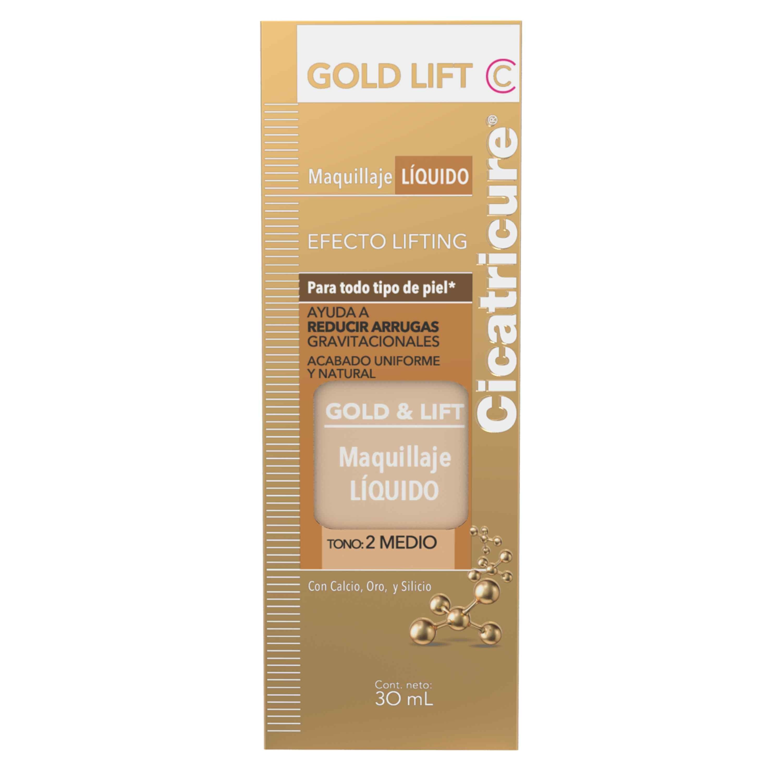 Cicatricure Gold Lift Maquillaje Líquido, la primera base de maquillaje en tratar arrugas gravitacionales. Su exclusiva fórmula combina Péptidos con Oro, Calcio y Silicio, generando un efecto lifting, a la vez que cubre uniformemente la piel. De textura flexible, logra un