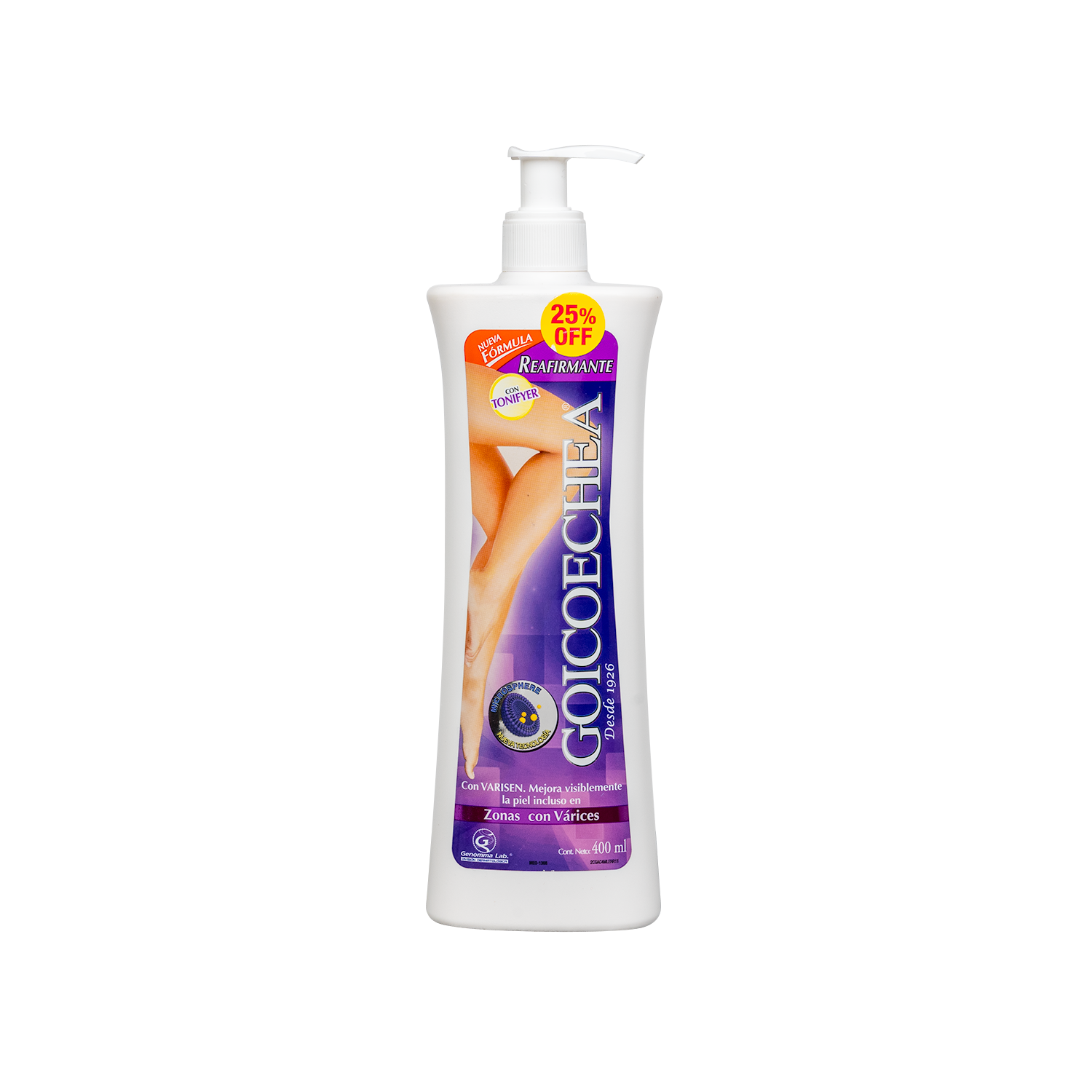Goicoechea Reafirmante con Tonifyer posee una fórmula potenciada con L-Carnitina, Sinefrina y Elastina que, en conjunto, regeneran y fortalecen el tejido de la epidermis mejorando su elasticidad, ayudan a la reducción de medidas, disminuyen la retención de líquidos y otorgan tonicidad a la piel con flacidez.