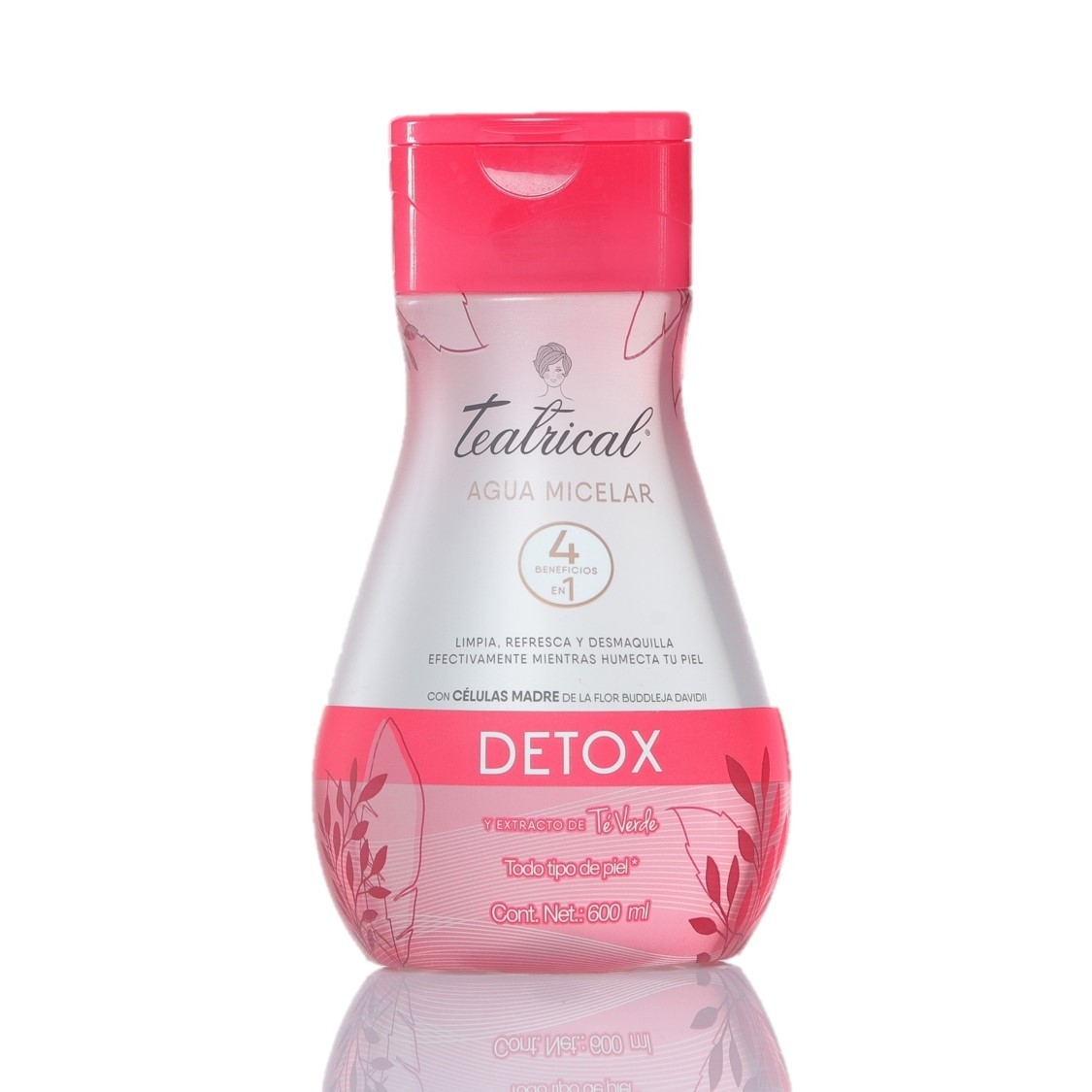 Lo último en innovación Teatrical presenta su nueva AGUA MICELAR DETOX con Té Verde, 4 beneficios en 1. Trabaja a nivel celular LIMPIA atrayendo impurezas, DESMAQUILLA efectivamente, manteniene la HUMECTACIÓN y SUAVIDAD de la piel. Con células madre de la flor de Buddleja davidii y agua de rosas, además extrae la parte más fundamental del TÉ VERDE, sus células madre, para impregnar tu piel de todos sus beneficios.
