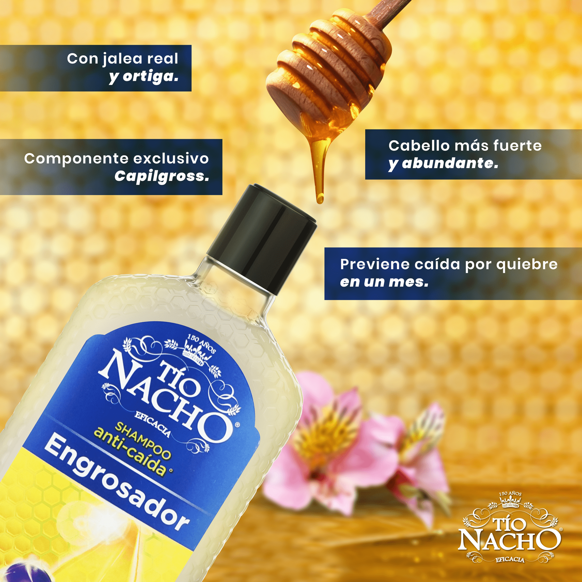 La nueva línea Engrosador con jalea real, una combinación de ingredientes de origen natural, aumentan el diámetro de cada pelo dejándolo más fuerte, más grueso y con mayor volumen gracias a su fórmula con el componente exclusivo Capilgross.