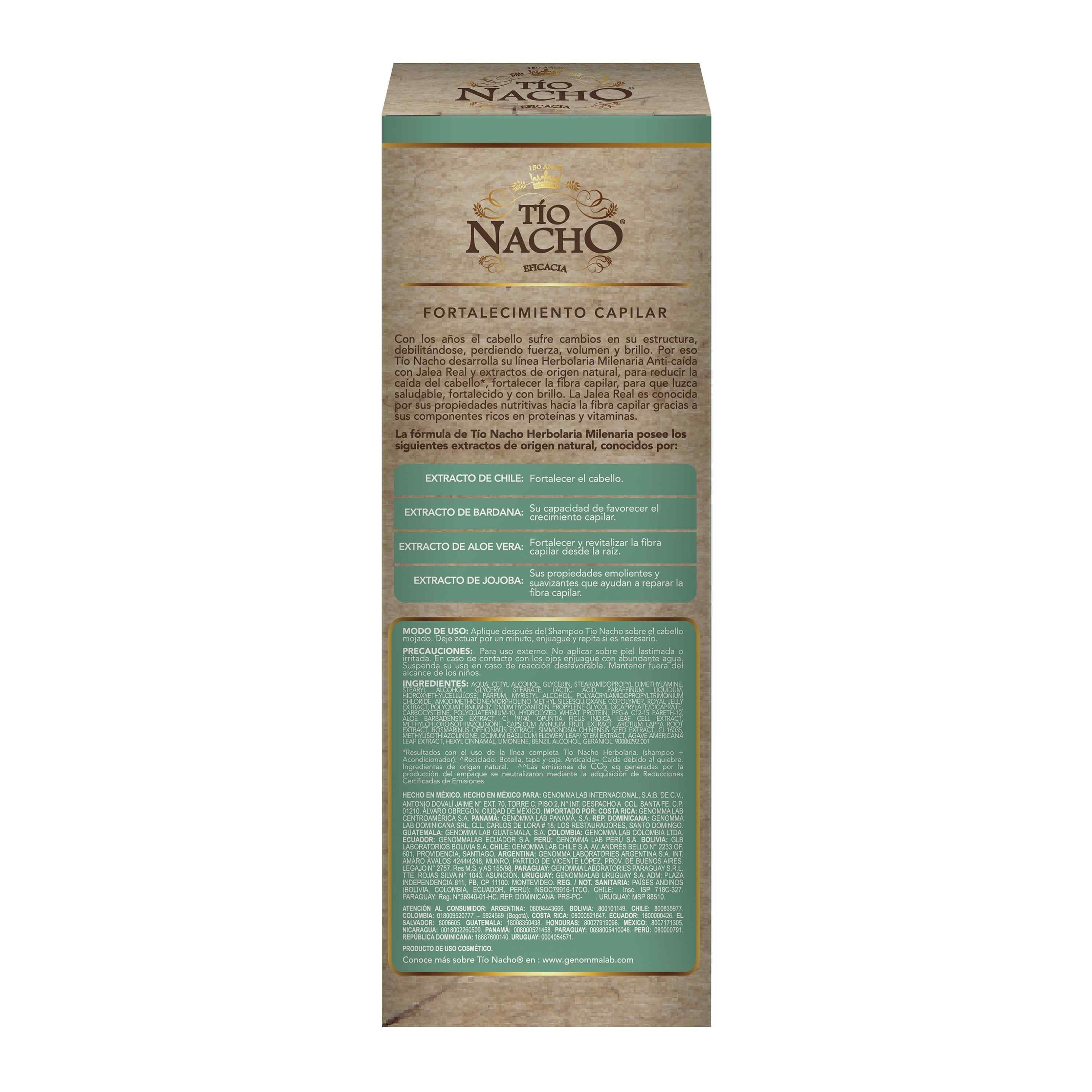 EVITA LA CAÍDA de cabello con TÍO NACHO Herbolaria Milenaria, el acondicionador 100% orgánico, que gracias a su selecta combinación de extractos naturales, no sólo nutre el cabello , sino que también lo FORTALECE y REVITALIZA desde la raíz a la punta. Menos cabellos en el cepillo, más en tu cabeza.