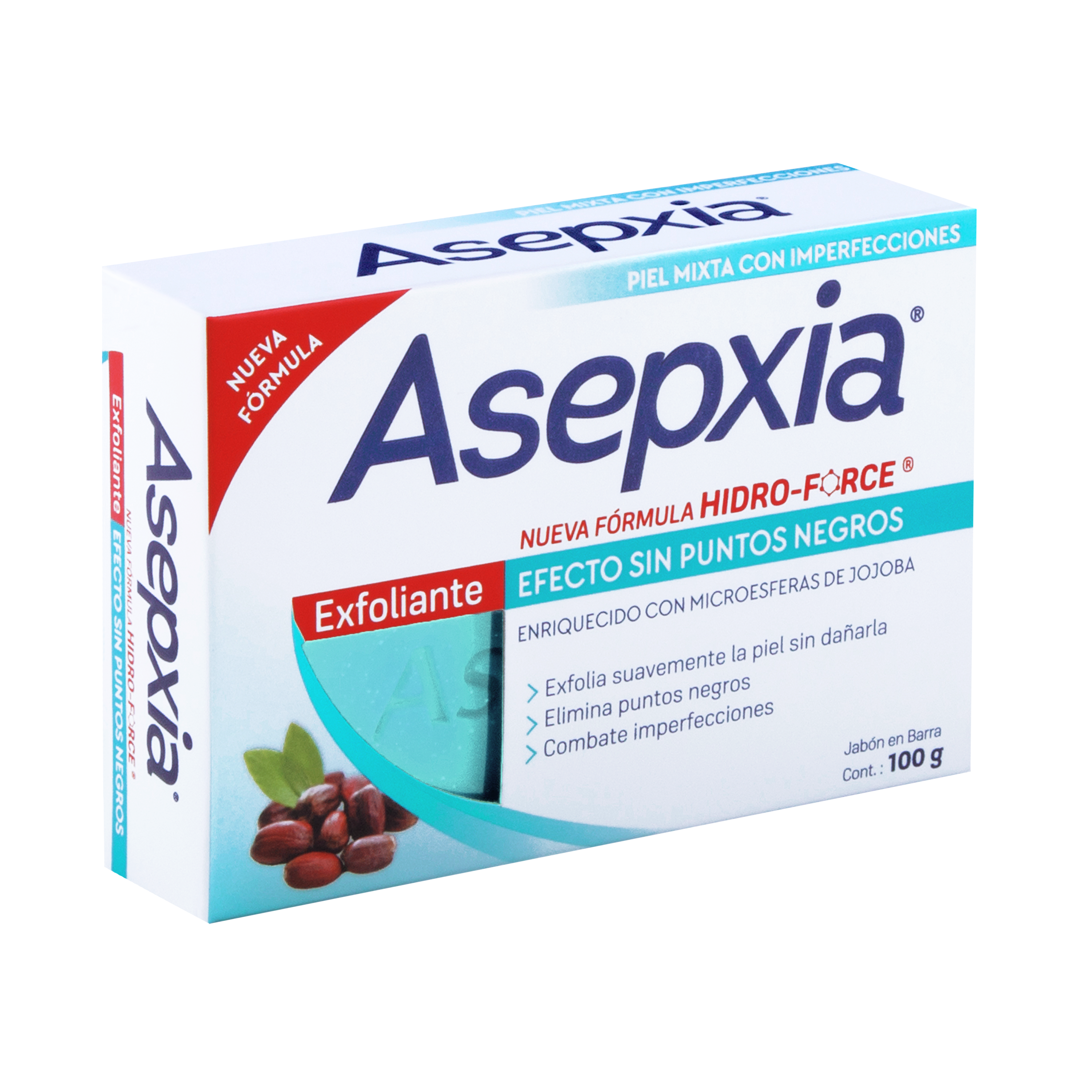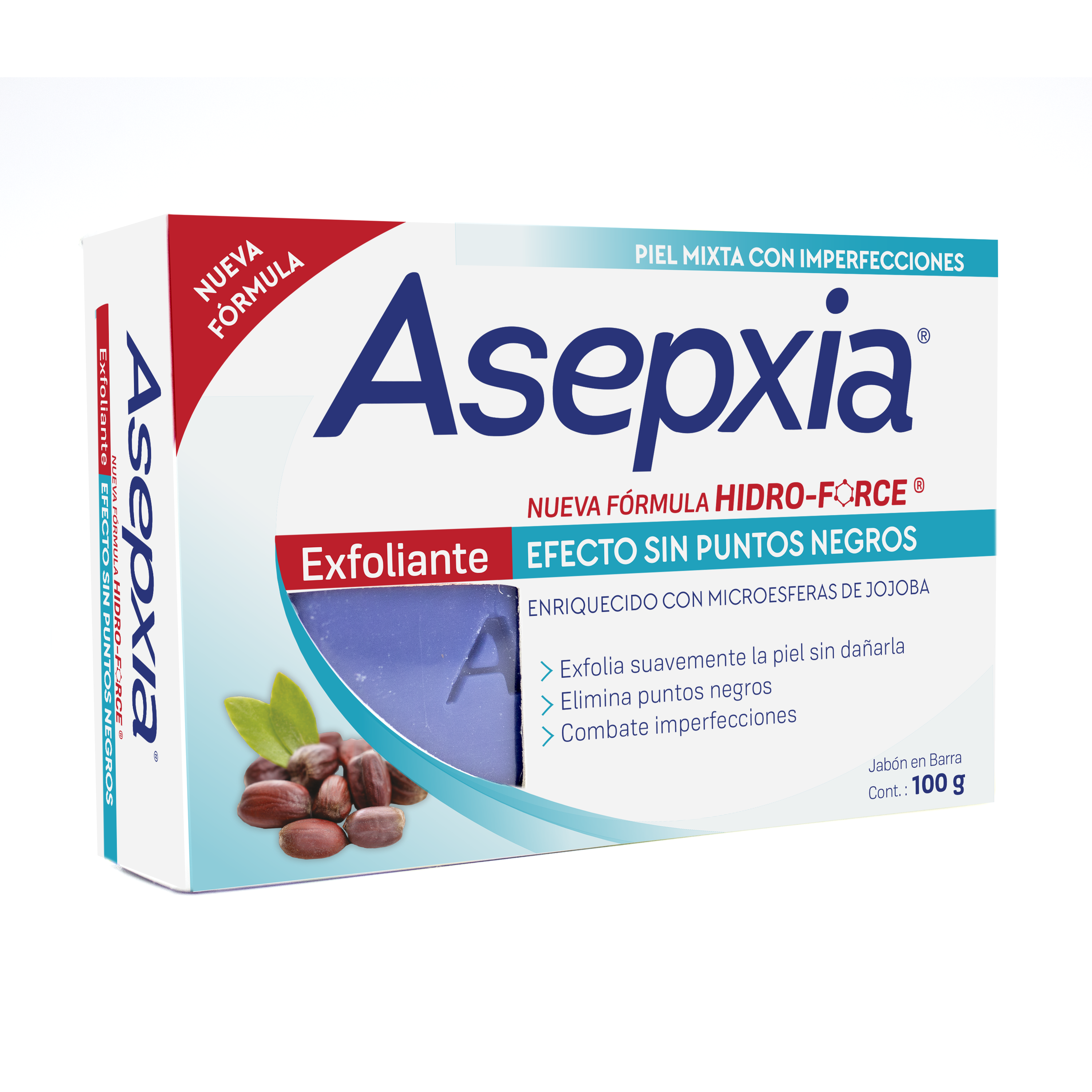 Protege tu piel de los PUNTOS NEGROS con el siguiente nivel de limpieza de Asepxia. El Jabón EXFOLIANTE está recomendado para TODO TIPO de PIEL con impefecciones, ya que su efecto exfoliante SUAVIZA la piel sin dañarla y ayuda a eliminar los puntos negros e imperfecciones al instante. Nueva fórmula avanzada HIDRO-FORCE, una mezcla única de ácidos salicílico y glicólico combinado con extractos naturales que COMBATEN PROFUNDAMENTE las imperfecciones. Enriquecido con MICROESFERAS de JOJOBA.