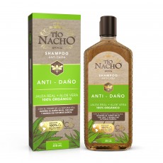 Tío Nacho renueva su imagen para brindarte un Cabello y Planeta más saludable. El Shampoo Tío Nacho Anti-Daño ofrece un tratamiento de REPARACIÓN PROFUNDA para el CABELLO DAÑADO. Con extractos de origen natural como JALEA REAL + ALOE VERA 100% ORGÁNICO, conocido por sus propiedades REPARADORAS, que fortalecen la fibra capilar y KERATINA, VEGETAL que proporciona la SUAVIDAD, FUERZA Y BRILLO a tu cabello. Nuevo empaque 100% reciclado y reciclable.