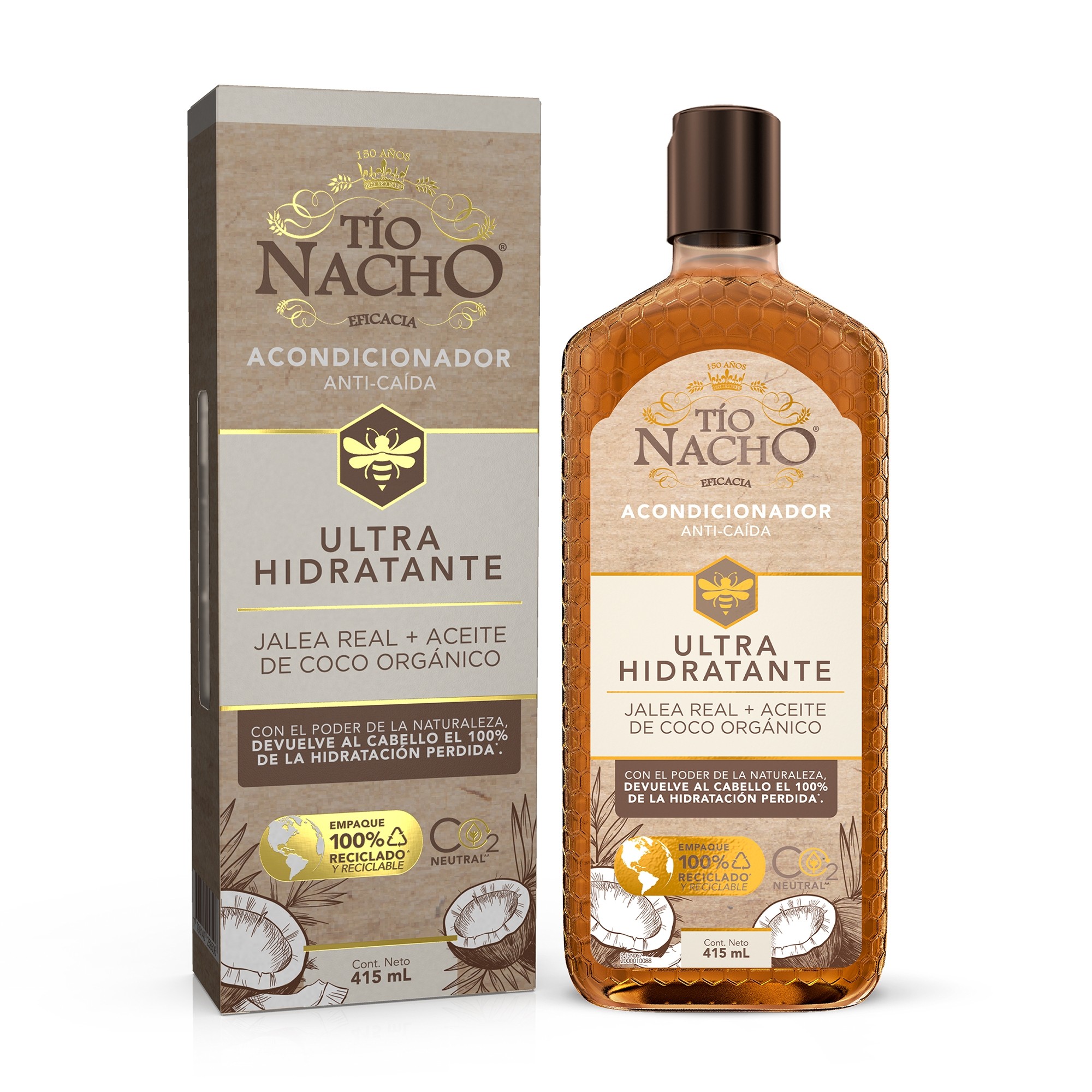 Tío Nacho renueva su imagen para brindarte un Cabello y Planeta más saludable. Prueba la nueva línea ULTRA HIDRATANTE de TÍO NACHO que devuelve a tu cabello 100% de la hidratación perdida. El Acondicionador que no sólo da brillo y suavidad a tu cabello, sino que aporta hidratación, lo mantiene saludable gracias su fórmula con ACEITE de COCO ORGÁNICO y JALEA REAL. Nuevo empaque 100% reciclado y reciclable.