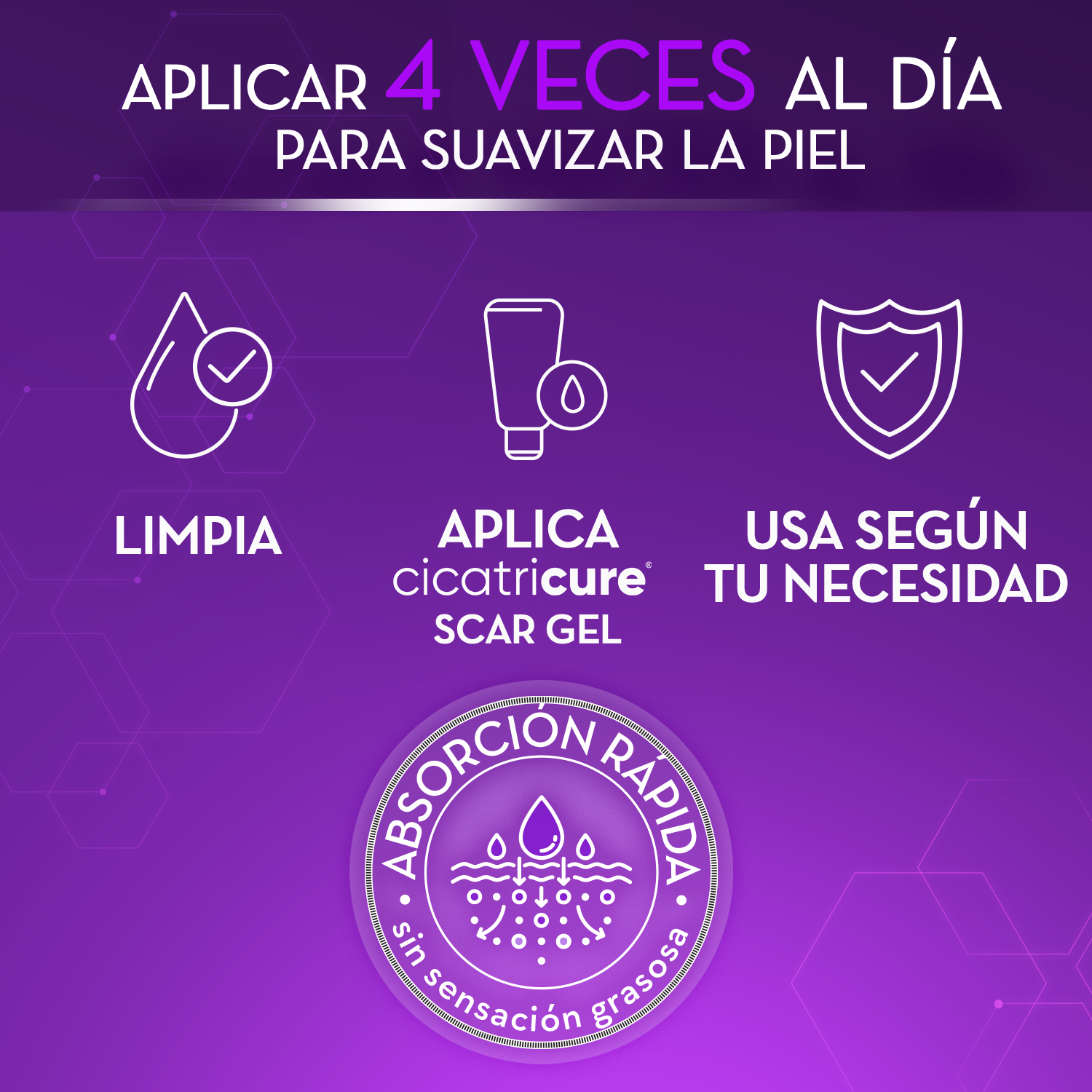 *Utilizar en cicatrices no queloides menores a un año y estrías recientes (no mayor a 1 año de evolución). **No aplicar sobre piel irritada, lastimada o en heridas que no han cicatrizado completamente. Producto cosmético sin acción terapéutica. Aplicar cuando la cicatriz esté totalmente formada