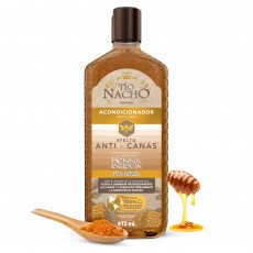 Con el paso de los años nuestro cabello pierde melanina logrando la aparición de canas. Tío Nacho Anti-edad EFECTO ANTI CANAS contiene un fórmula natural que MATIZA LAS CANAS para tener un cabello visiblemente con MENOS CANAS y MENOS CAÍDA. Actúa eficazmente sobre el cuero cabelludo, logrando menos canas visibles en 5 semanas. Libre de amoniacos y peróxidos. Para mejores resultados use la línea completa de Tío Nacho Anti canas.