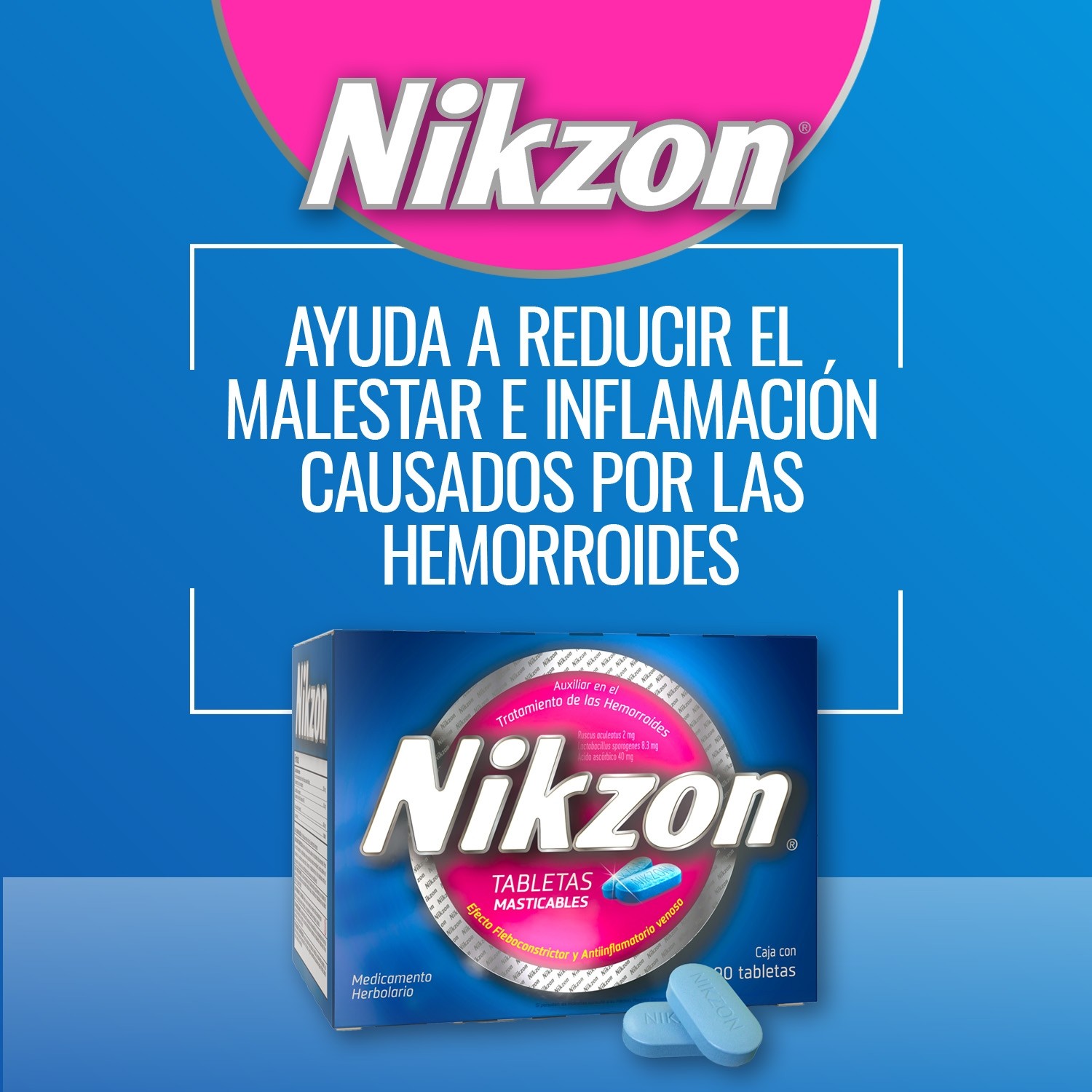 Nikzon está indicado como auxiliar en el tratamiento de las hemorroides. Posee un efecto fleboconstrictor y antiinflamatorio venoso que alivia las várices hemorroidales. Se indica también en el tratamiento de la insuficiencia venosa crónica. Favorece el restablecimiento de la flora bacteriana normal. Coadyuvante en el tratamiento de trastornos digestivos como la disminución de la motilidad intestinal, distensión abdominal e intolerancia a la lactosa. Funciona como antiflatulento.