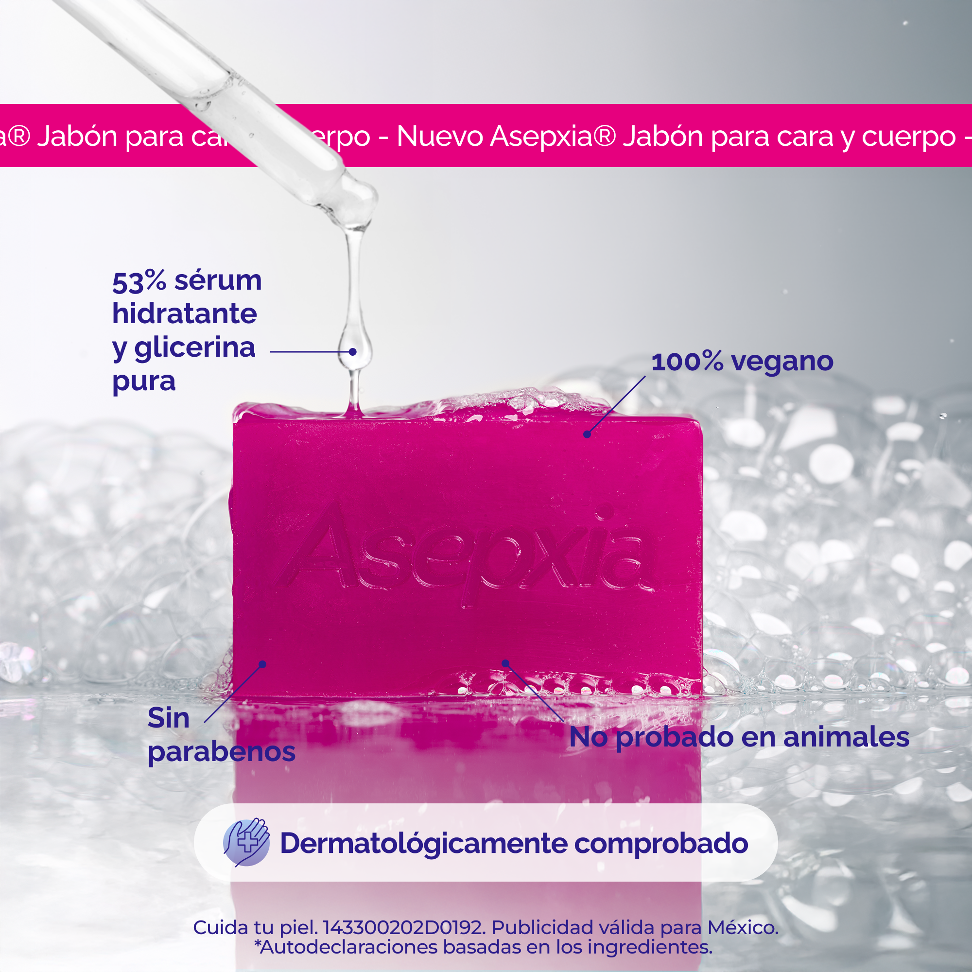 Asepxia Jabón Suavizante con 53% sérum hidratante. Limpia, renueva y suaviza sin resecar. Cara y cuerpo, 4 pack.