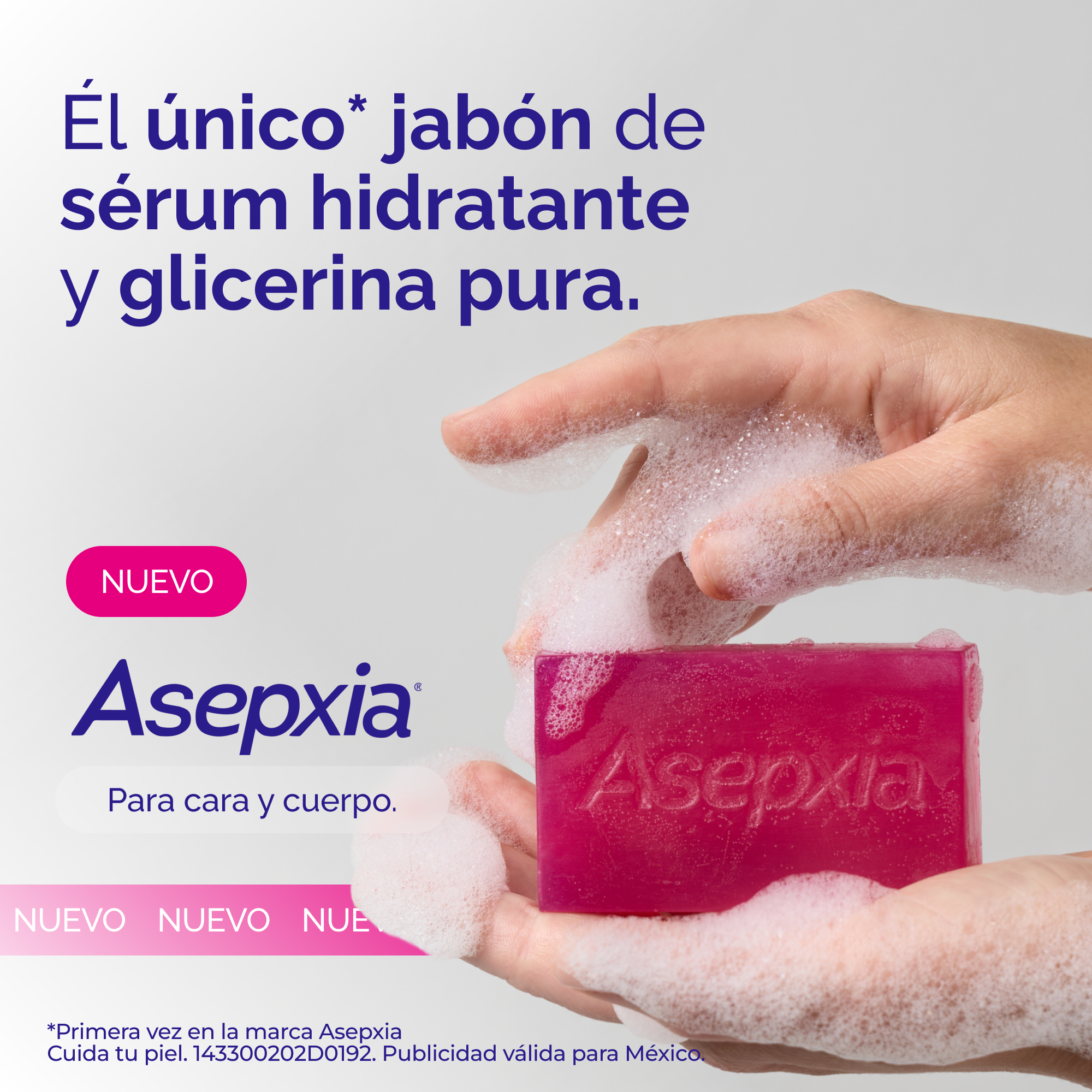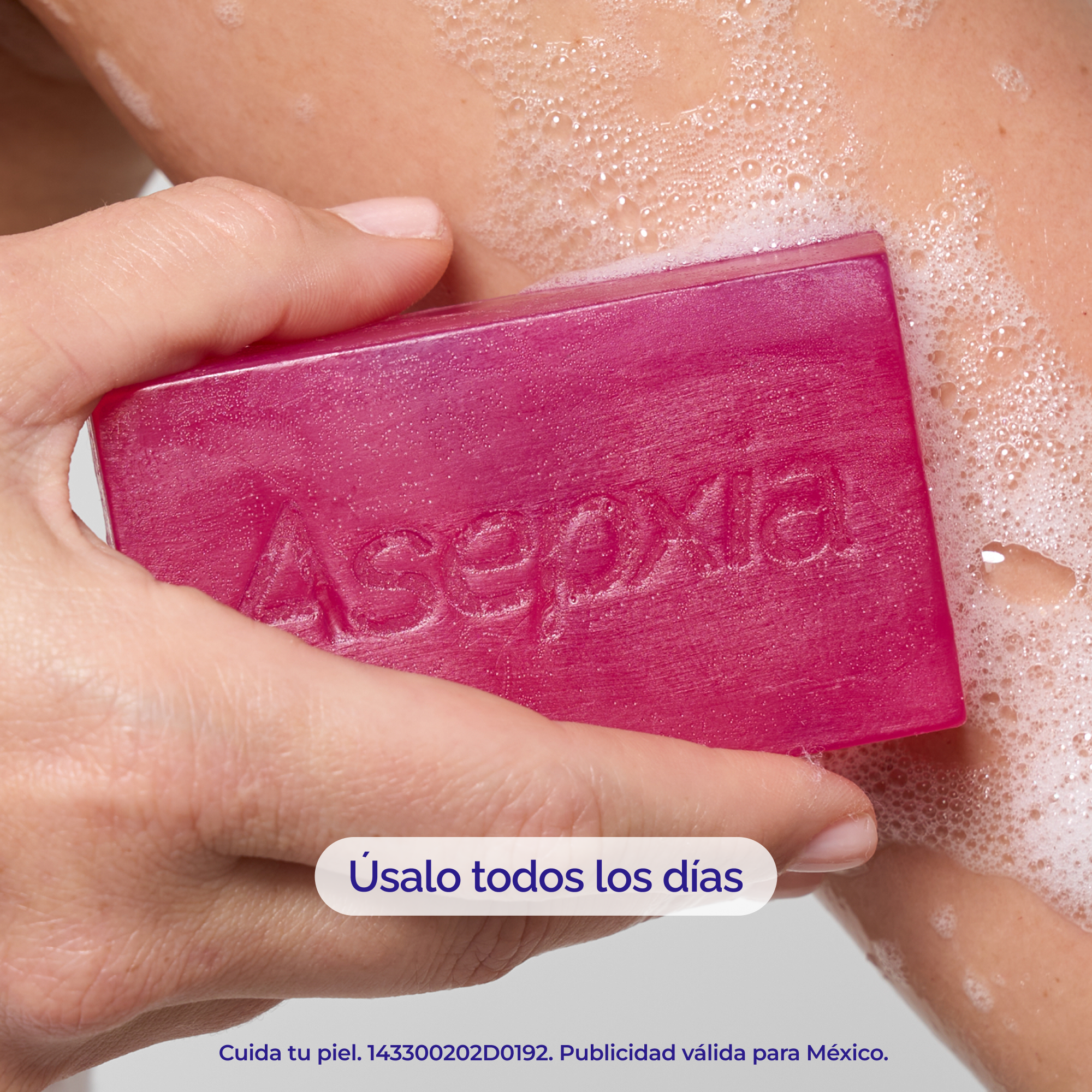 Asepxia Jabón Suavizante con 53% sérum hidratante. Limpia, renueva y suaviza sin resecar. Cara y cuerpo, 100 g.