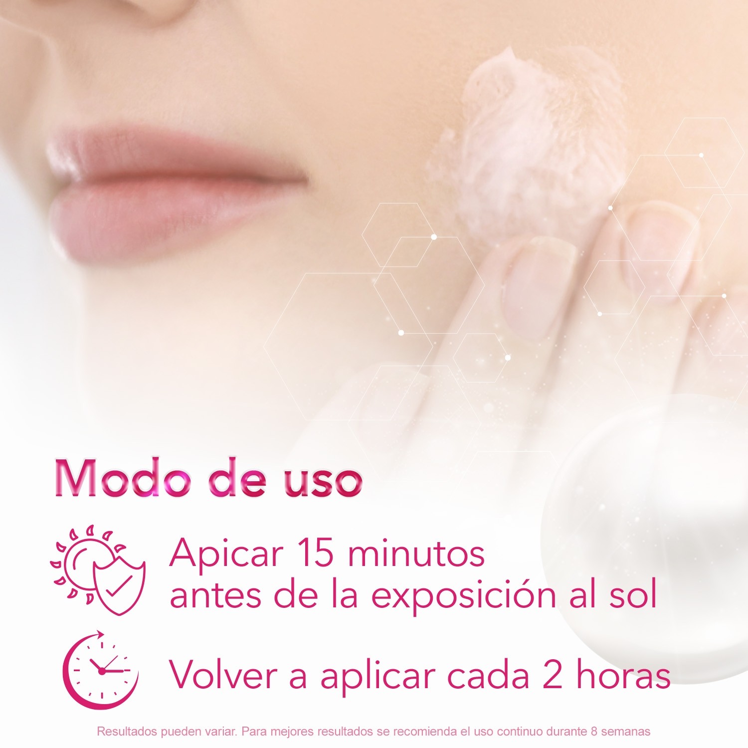 Crema de cuidado diario contra rayos UVA - UVB con FPS 50. Protege contra rayos de luz solar y luz azul. Contiene ácido hialurónico que actua como agente hidrante en la piel, haciendo que la piel mantenga su aspecto joven. Rellena las arrugas y ayuda a mantener la firmeza de nuestra piel. Con +PRO COLÁGENO: Ayuda a incrementar la síntesis de colágeno en hasta un 82% Toque Seco, Efecto Mate