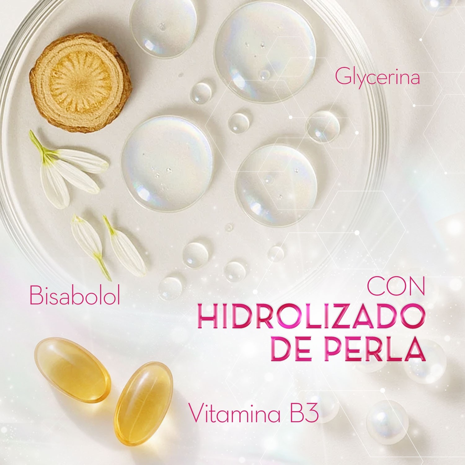 que combina el poder la niacinamida y el hidrolizado de perla para una piel más clara y con menos manchas en 4 semanas.