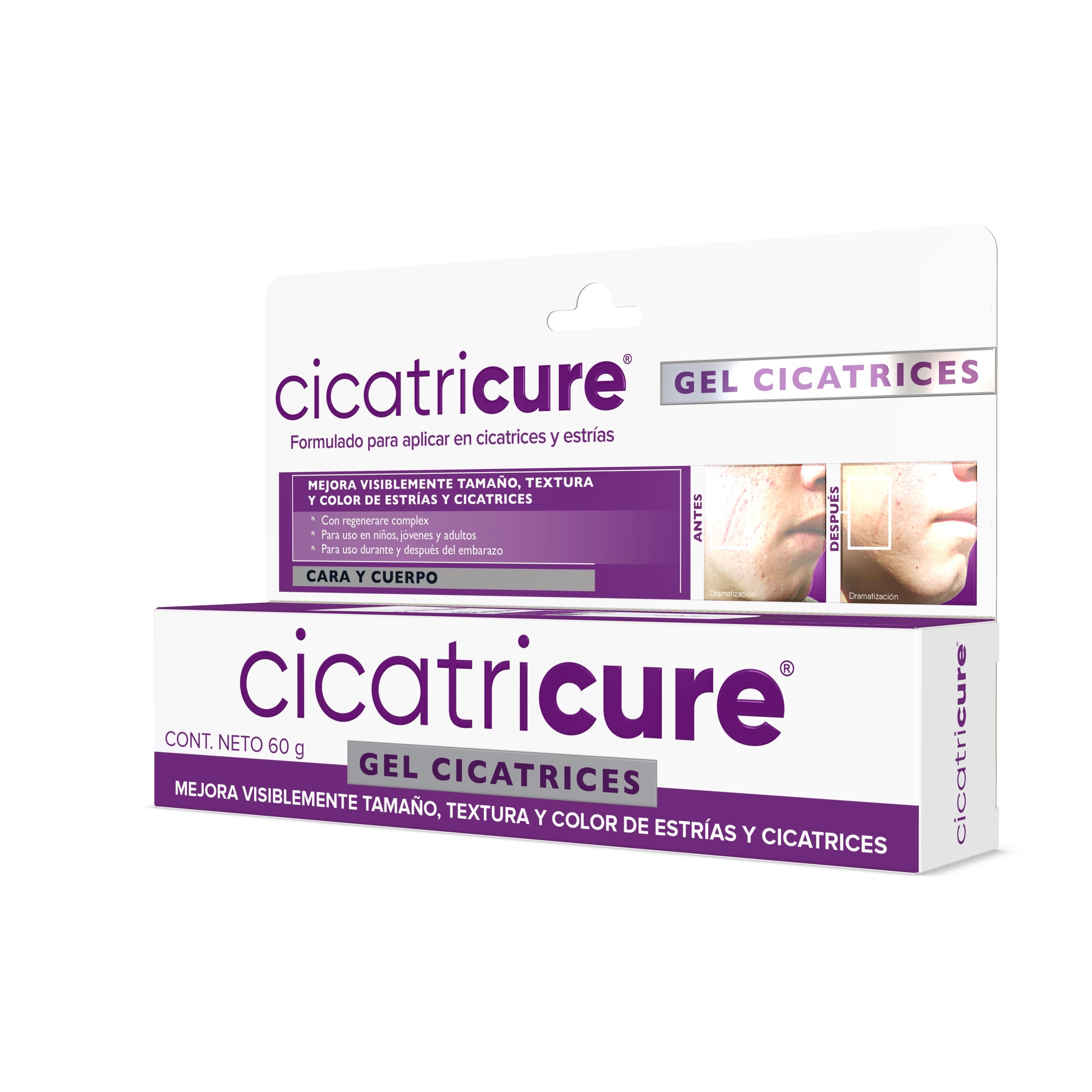 Cicatricure Gel favorece el DESVANECIMIENTO progresivo de CICATRICES de cirugía y ESTRÍAS gracias a los componentes de fórmula exclusiva que aumentan la QUERATINA, mejoran el proceso de CICATRIZACIÓN, regeneran e HIDRATAN la piel. Este producto esta CLÍNICAMENTE COMPROBADO por el Estudio externo de eficacia cosmética. CICATRICURE un áccidente ciéntifico que se ha transformado en un completa línea de productos dermocosméticos con los más altos éstandares de calidad. Cicatricure es la línea que además de desvanecer cicatrices desaparece notablmente líneas de expresión y arrugas.