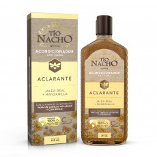 Tío Nacho renueva su imagen para brindarte un Cabello y Planeta más saludable. TÍO NACHO SHAMPOO ACLARANTE está formulado con JALEA REAL, extractos de origen natural como MANZANILLA, BARDANA, ROMERO y ALOE VERA, que ayudarán a lucir un cabello iluminado realzando los reflejos rubios y destellos dorados. Además de fortalecer la fibra capilar. ¡Luce un cabello claro y fuerte!.