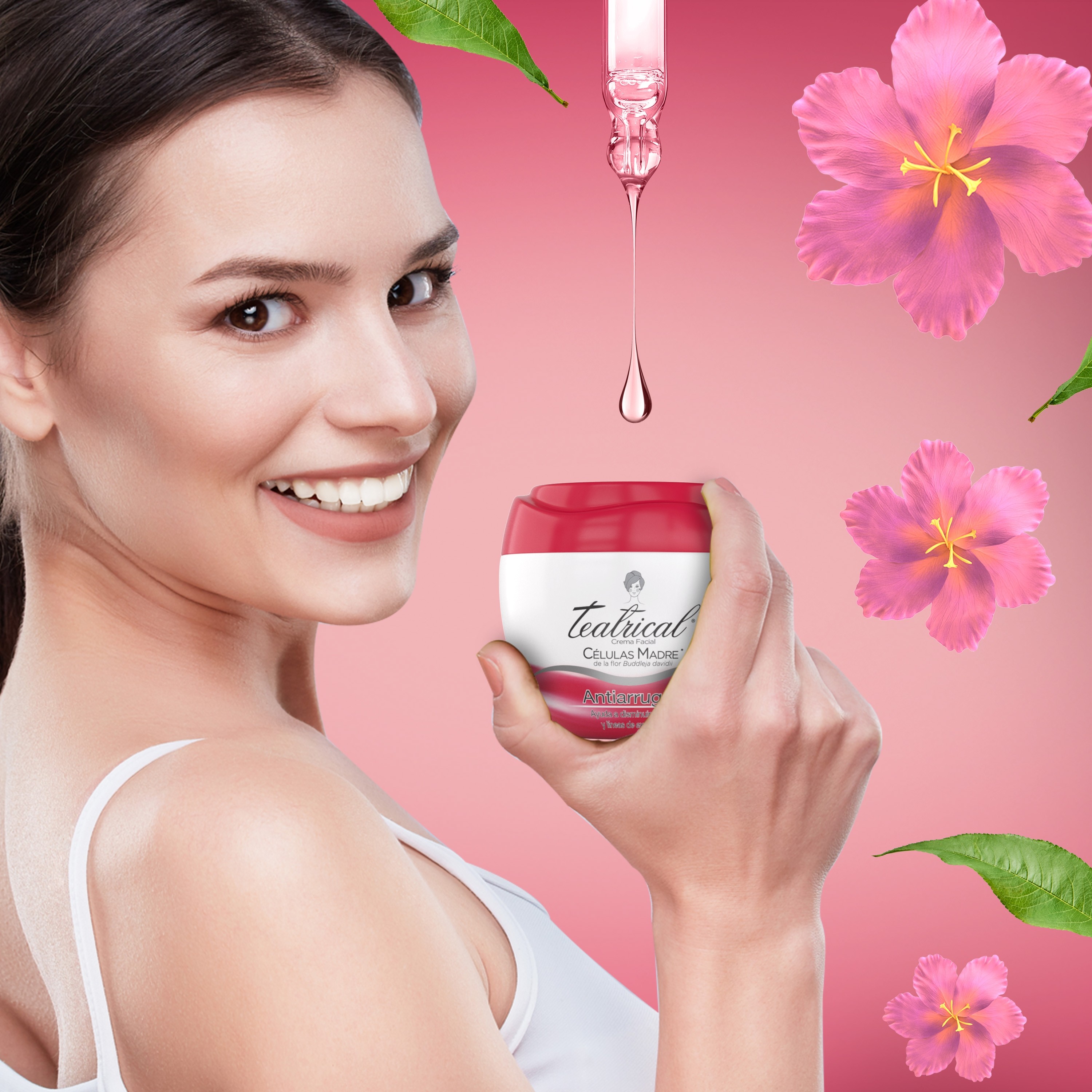 Teatrical Células Madre Antiarrugas es una CREMA FACIAL que ayuda a disminuir ARRUGAS y LÍNEAS DE EXPRESIÓN para lucir un CUTIS más TERSO y radiante. Con una textura SUAVE que HUMECTA y NUTRE la piel ayudando a prevenir signos del envejecimiento como la flacidez. Contiene células madre de la flor Buddleja Davidii que brindan protección antioxidante ayudando a estimular la producción de COLÁGENO y ESLATINA mejorando la apariencia de la piel.
