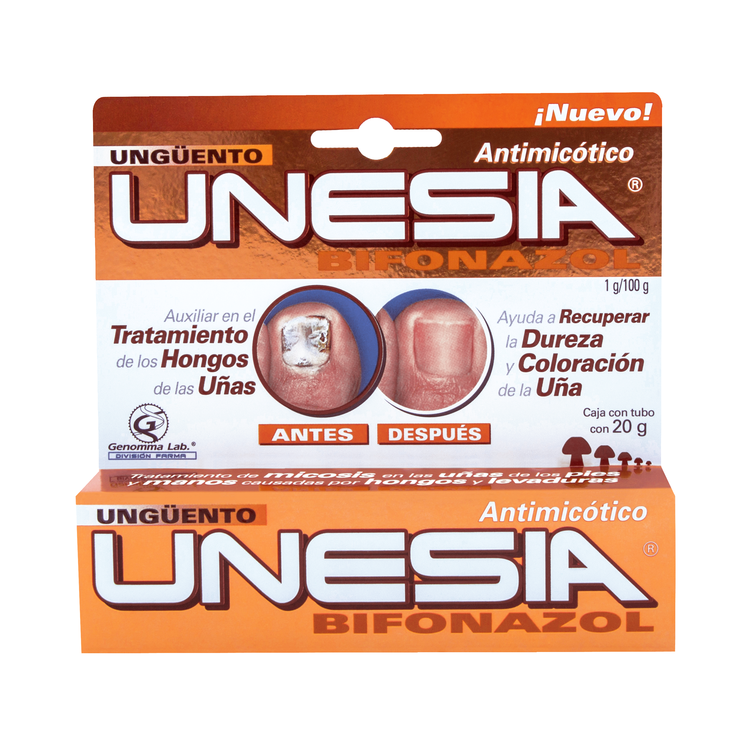 Unesia es un ANTIMICÓTICO en presentación UNGÜENTO indicado en el TRATAMIENTO de micótico en las UÑAS de los PIES y MANOS causadas por HONGOS y LEVADURAS. Ayuda a recuperar la COLORACIÓN de la uña. Ataca al hongo que ocasiona la UÑA AMARILLA. Caja con tubo de 20 g