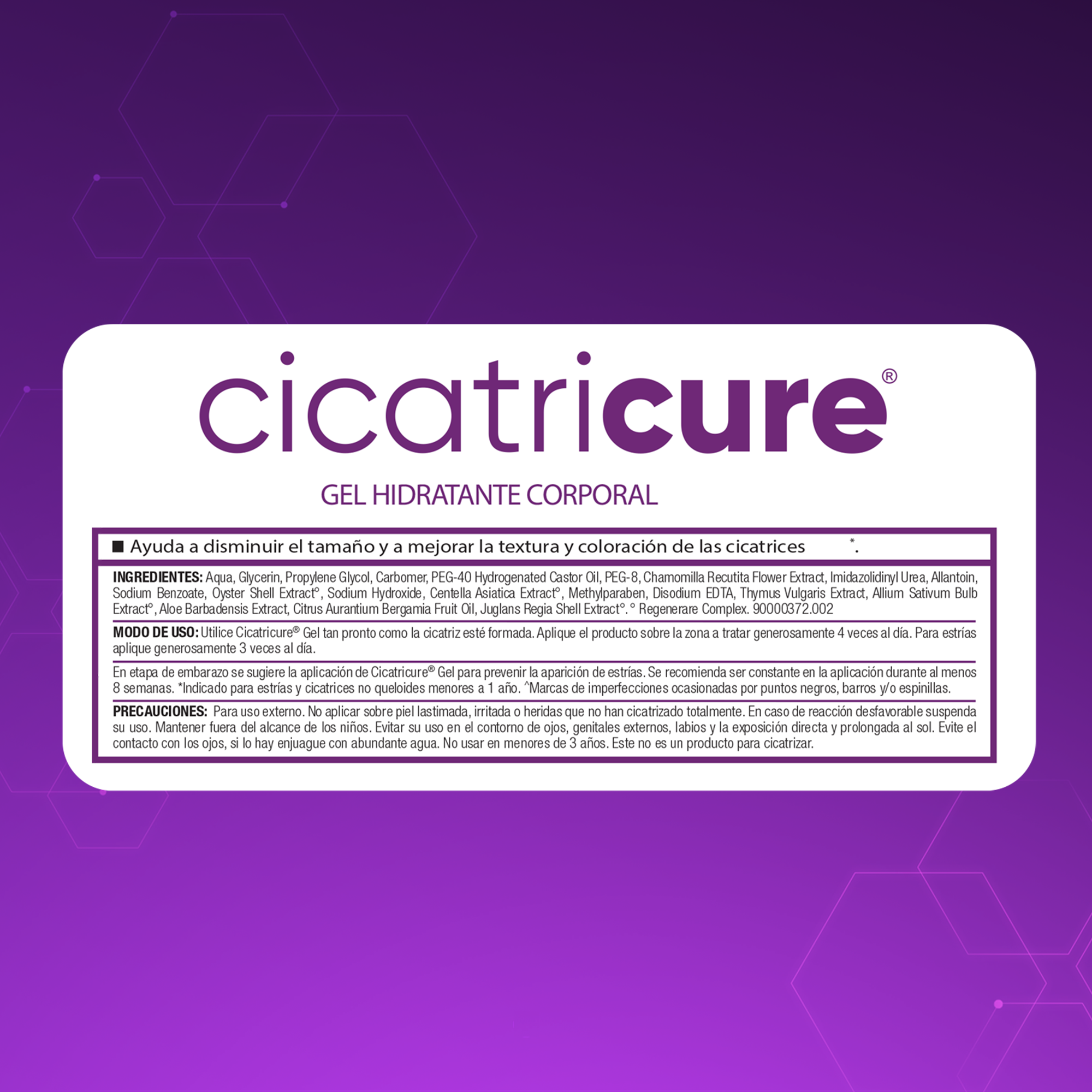 Cicatricure Gel favorece el DESVANECIMIENTO progresivo de CICATRICES de cirugía y ESTRÍAS gracias a los componentes de fórmula exclusiva que aumentan la QUERATINA, mejoran el proceso de CICATRIZACIÓN, regeneran e HIDRATAN la piel. Este producto esta CLÍNICAMENTE COMPROBADO por el Estudio externo de eficacia cosmética. CICATRICURE un áccidente ciéntifico que se ha transformado en un completa línea de productos dermocosméticos con los más altos éstandares de calidad. Cicatricure es la línea que además de desvanecer cicatrices desaparece notablmente líneas de expresión y arrugas.