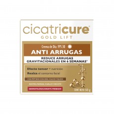 Cicatricure Gold Lift Día Favorece la recuperación de densidad y ELASTICIDAD de la piel, corrigiendo visiblemente las zonas del rostro más marcadas por la edad. Brinda PROTECCIÓN contra la RADIACIÓN UV: FPS 30 y FP UVA 10. Textura no grasa. DERMATOLÓGICAMENTE TESTEADO.