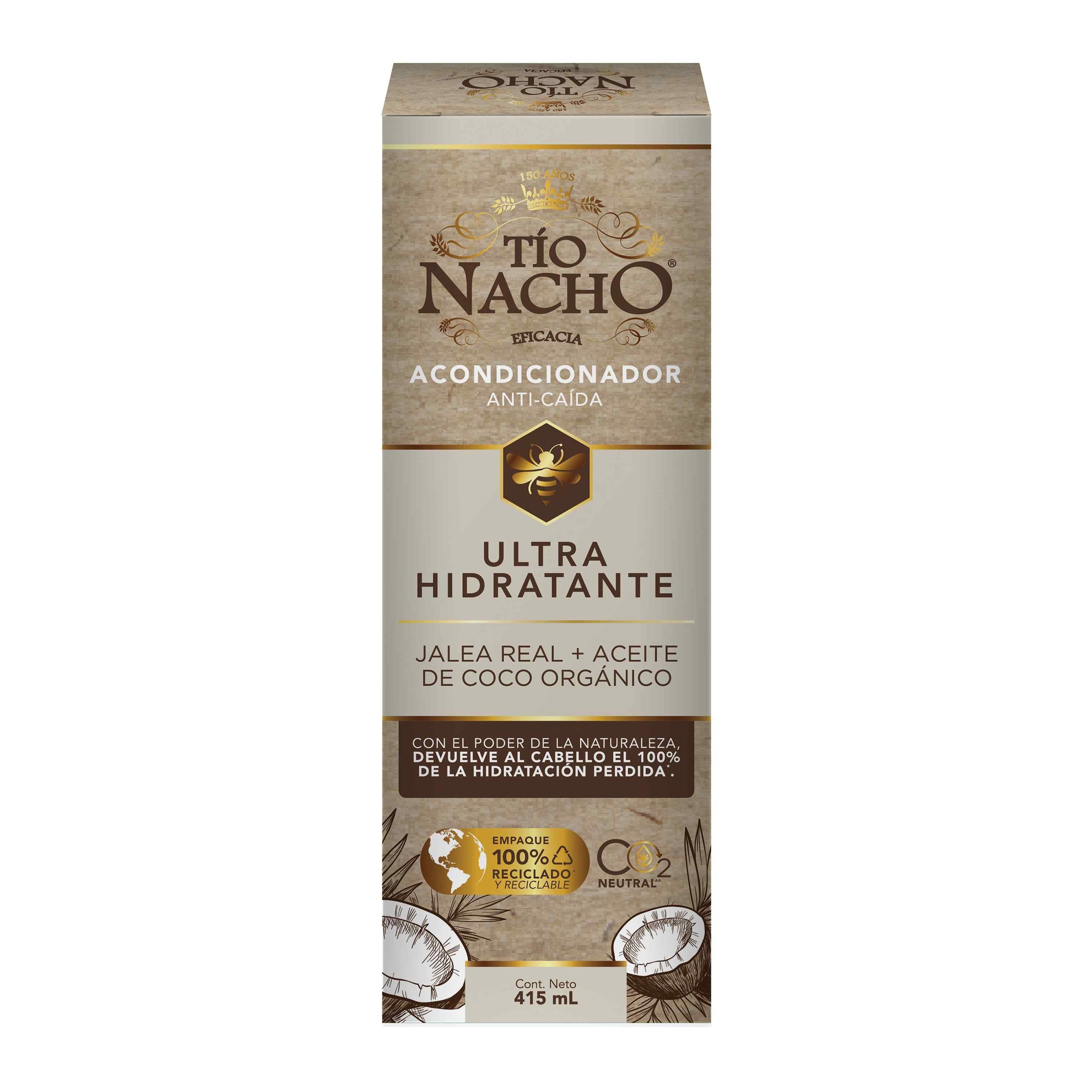 Tío Nacho renueva su imagen para brindarte un Cabello y Planeta más saludable. Prueba la nueva línea ULTRA HIDRATANTE de TÍO NACHO que devuelve a tu cabello 100% de la hidratación perdida. El Acondicionador que no sólo da brillo y suavidad a tu cabello, sino que aporta hidratación, lo mantiene saludable gracias su fórmula con ACEITE de COCO ORGÁNICO y JALEA REAL. Nuevo empaque 100% reciclado y reciclable.