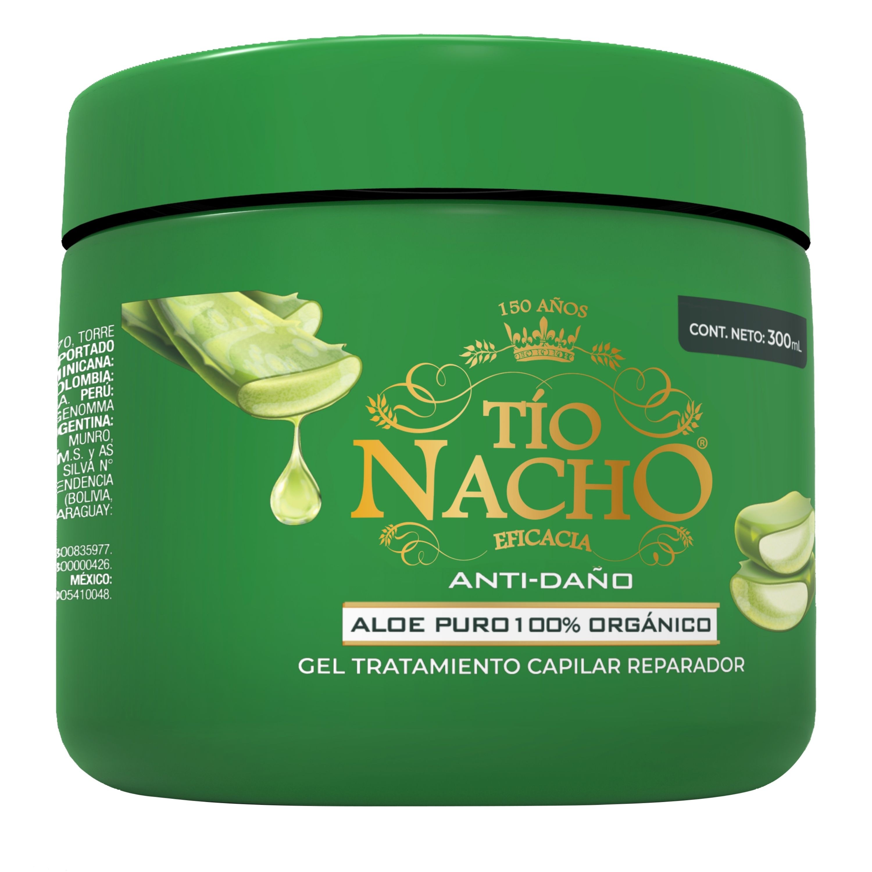 Tío Nacho Gel Tratamiento Reparador Anti-Daño, es un tratamiento concentrado de reparación intensiva para el cabello dañado, con Aloe Vera puro 100% orgánico